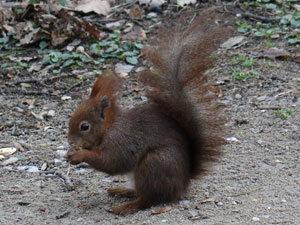 Eichkätzchen leben hier im Schlaraffenland. Sie werden von den vielen Spaziergängern liebevoll gefüttert |